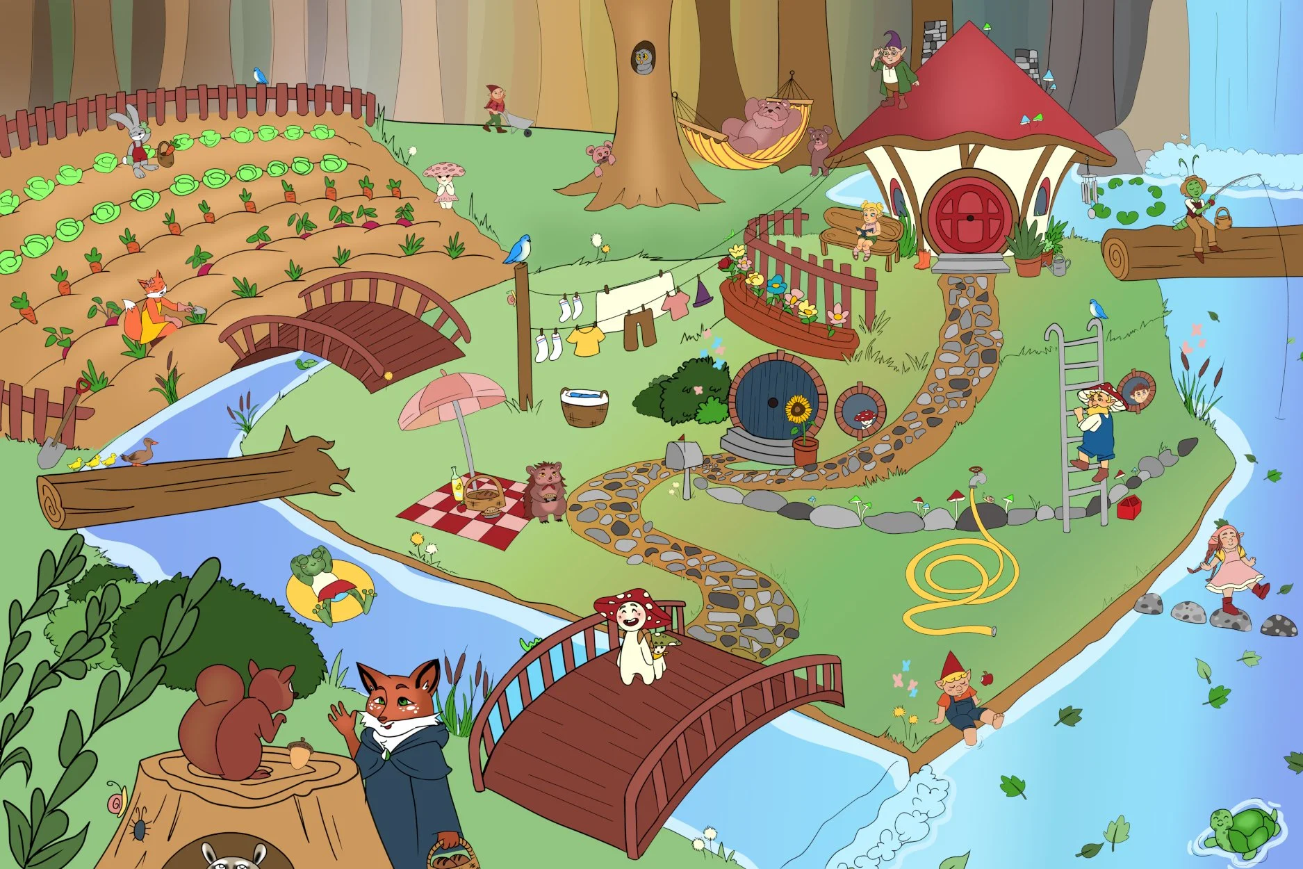 Pipp & Spalding and the Woodlands Wonderland was created for small children as an environment of sweetness, caring and sharing among all the creatures that live there. Pipp and Spalding are two gnomes who busy themselves by making toys for children and sharing with their friends and neighbors.